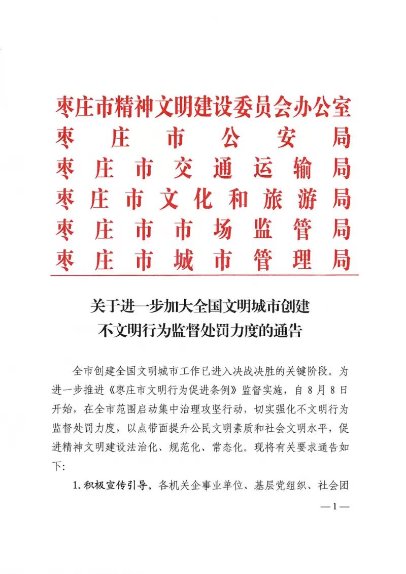 【創(chuàng)城有我 文明同行】關(guān)于進(jìn)一步加大全國文明城市創(chuàng)建不文明行為監(jiān)督處罰力度的通告